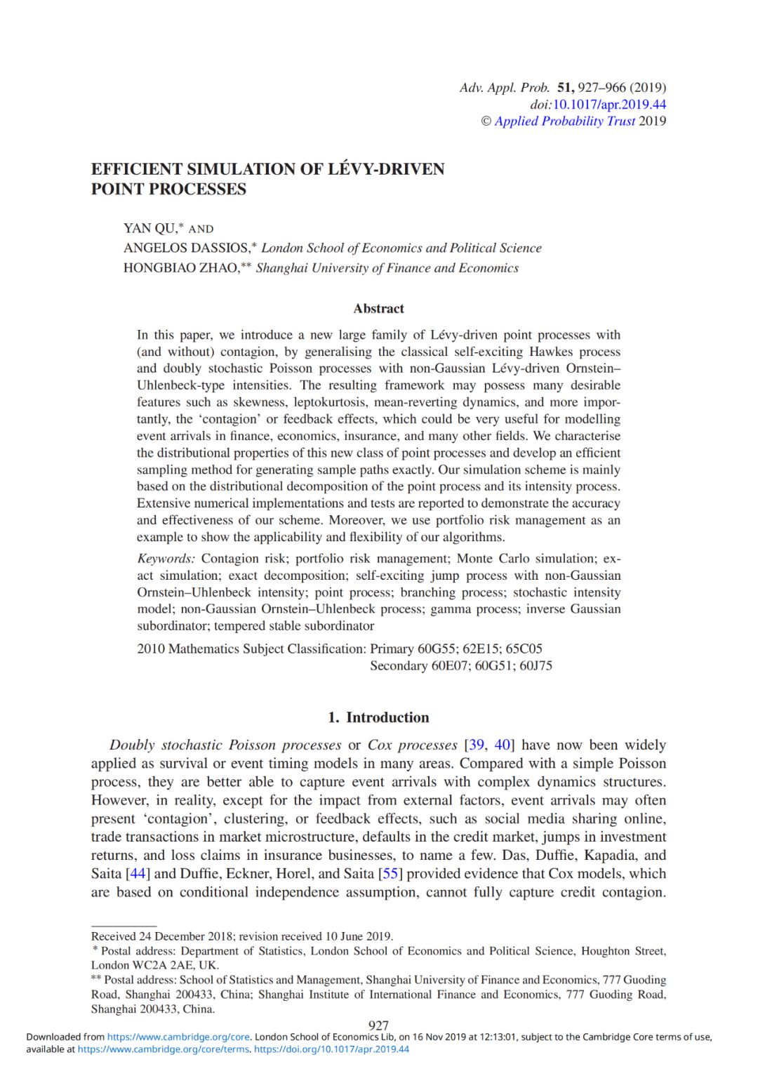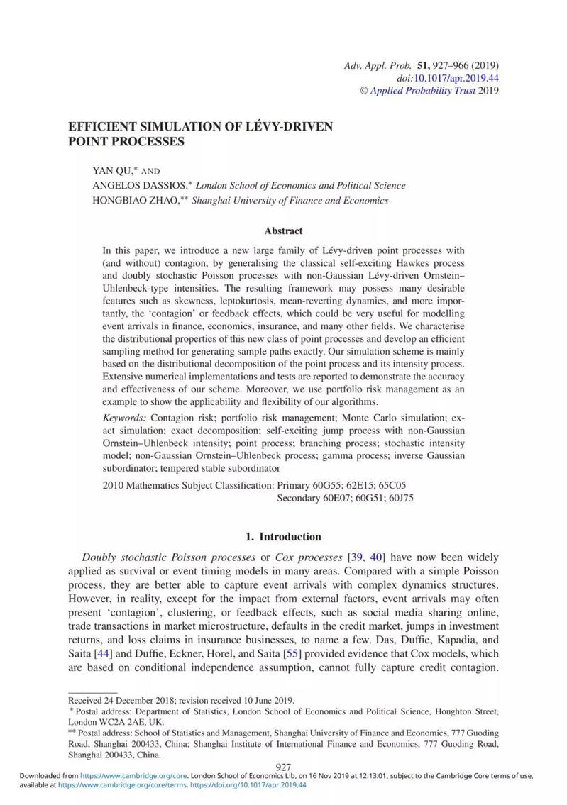 1.Efficient Simulation of Lévy-driven Point Processes,《Advances in Applied Probability》