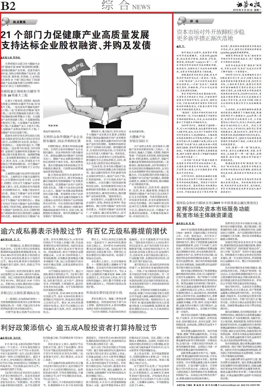 曹啸教授表示,毫无疑问,资本市场对于大健康产业发展至关重要,《纲要》明确了鼓励金融创新支持产业发展的政策,从而会激发金融市场针对大健康产业投资的期限、规模和风险特征进行产品和服务的创新,降低融资成本,实现更好的风险分担,引导更多的社会资本进入大健康产业。具体而言,预期相关企业债券发行会更加便利,债务融资方式会更加多样化,同时,相关企业进入股票市场会更加容易。另外,大健康产业是典型的高增速、大增量的蓝海市场,市场空间巨大。