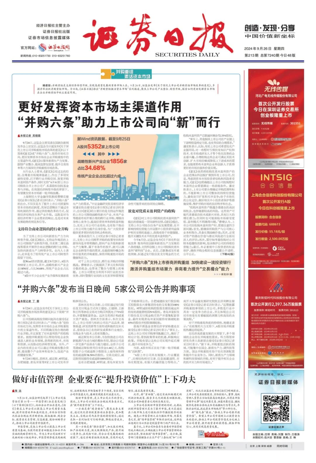上海财经大学金融学院教授、上海国际金融与经济研究院研究员曹啸在接受《证券日报》记者采访时表示,“并购六条”的出台,不仅仅是为了提升上市公司质量和资本市场的活跃度,其深层逻辑在于通过市场机制的作用,通过供给侧改革的方式,促使经济结构优化和产业升级。这既是对当前经济形势下企业需求的响应,也是对未来发展趋势的预见和引导。