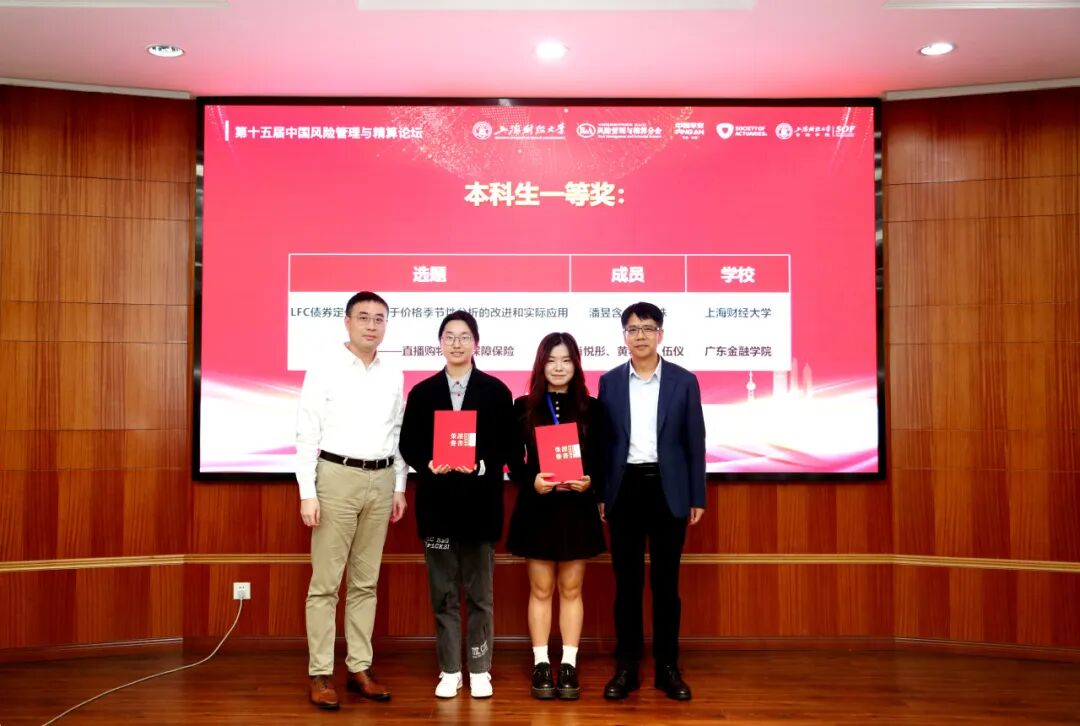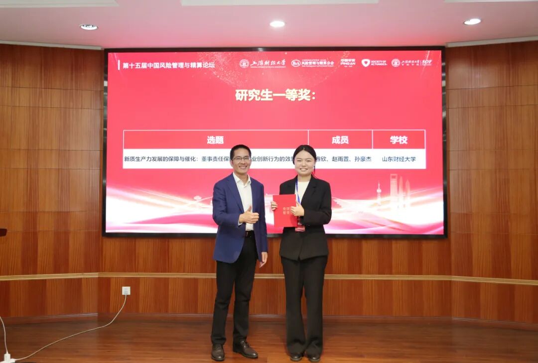 ▲ 谢志刚教授、工银安盛人寿保险公司首席精算师喻凌燕颁发研究生组二等奖