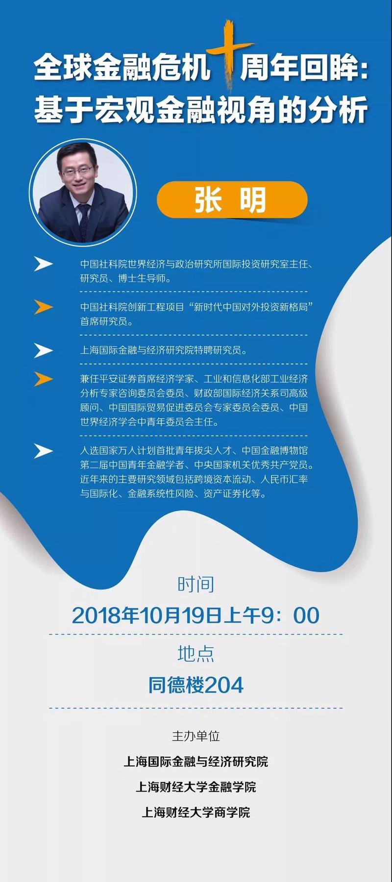 [活动预告]:11/16 张明教授专题讲座—金融危机10周年回眸:基于宏观金融视角的分析