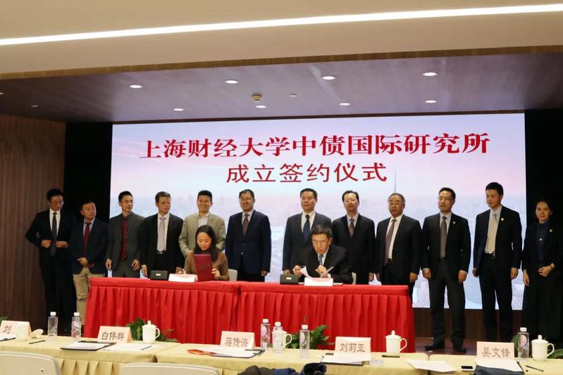 11月22日下午,上海财经大学中债国际研究所成立签约暨揭牌仪式在中央结算公司上海总部举行,来自复旦大学、上海交通大学、上海财经大学以及中央结算公司的各位领导和专家出席了仪式。并且在随后举行的2018-2019年度首批课题签约启动会上,各位学界、业界的学者专家通过思想碰撞与经验交流,为上财中债国际研究所这一跨界智囊研究平台的运作,进行了积极探索与有益推进。